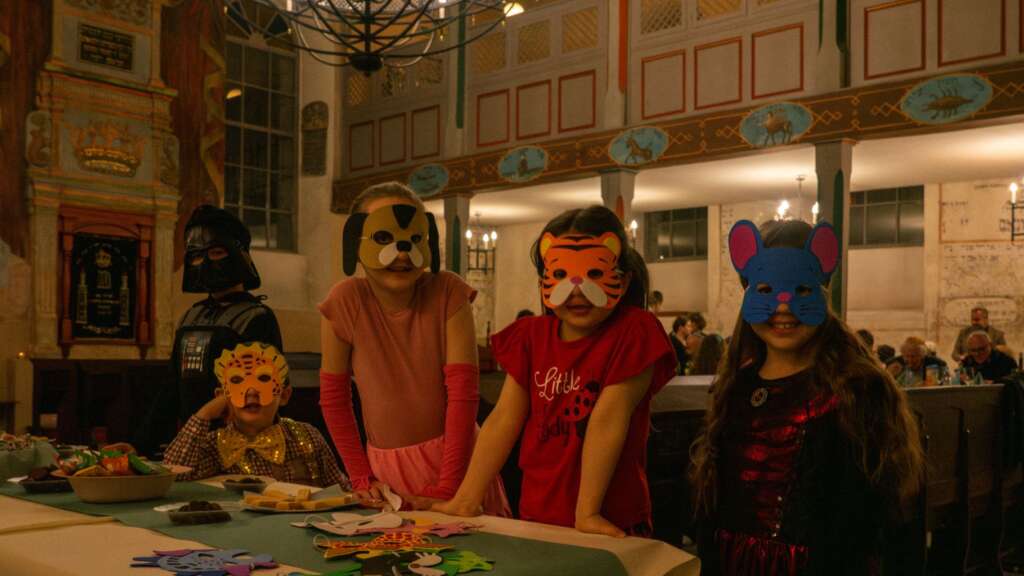 Purim is celebrated on the 14th day of the month of Adar. We began the celebration by reading Megillat Esther, or the Book of Esther (a parchment scroll), in the Kupa synagogue, describing the fate of the Jews of Susa, Haman’s intrigue, and the bravery of Esther and Mordechai. During the reading, those gathered in the synagogue tried to drown out Haman’s name by making noise, stomping, whistling, clapping, and using rattles. This custom is intended to “erase Haman’s name.”
