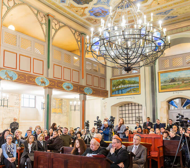 Kardynałowie Grzegorz Ryś i Stanisław Dziwisz w 40. rocznicę wizyty Jana Pawła II w Wielkiej Synagodze w Rzymie odwiedzili Synagogę Kupa